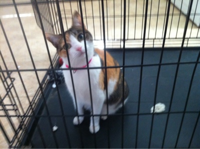 Hanging out in Lilly's kennel.